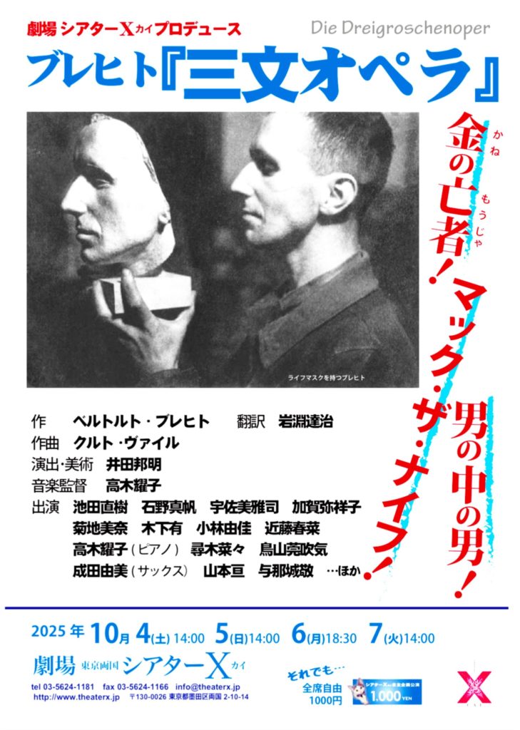加賀弥祥子さんより劇場シアターX(カイ)プロデュース公演『三文オペラ』のご案内です。